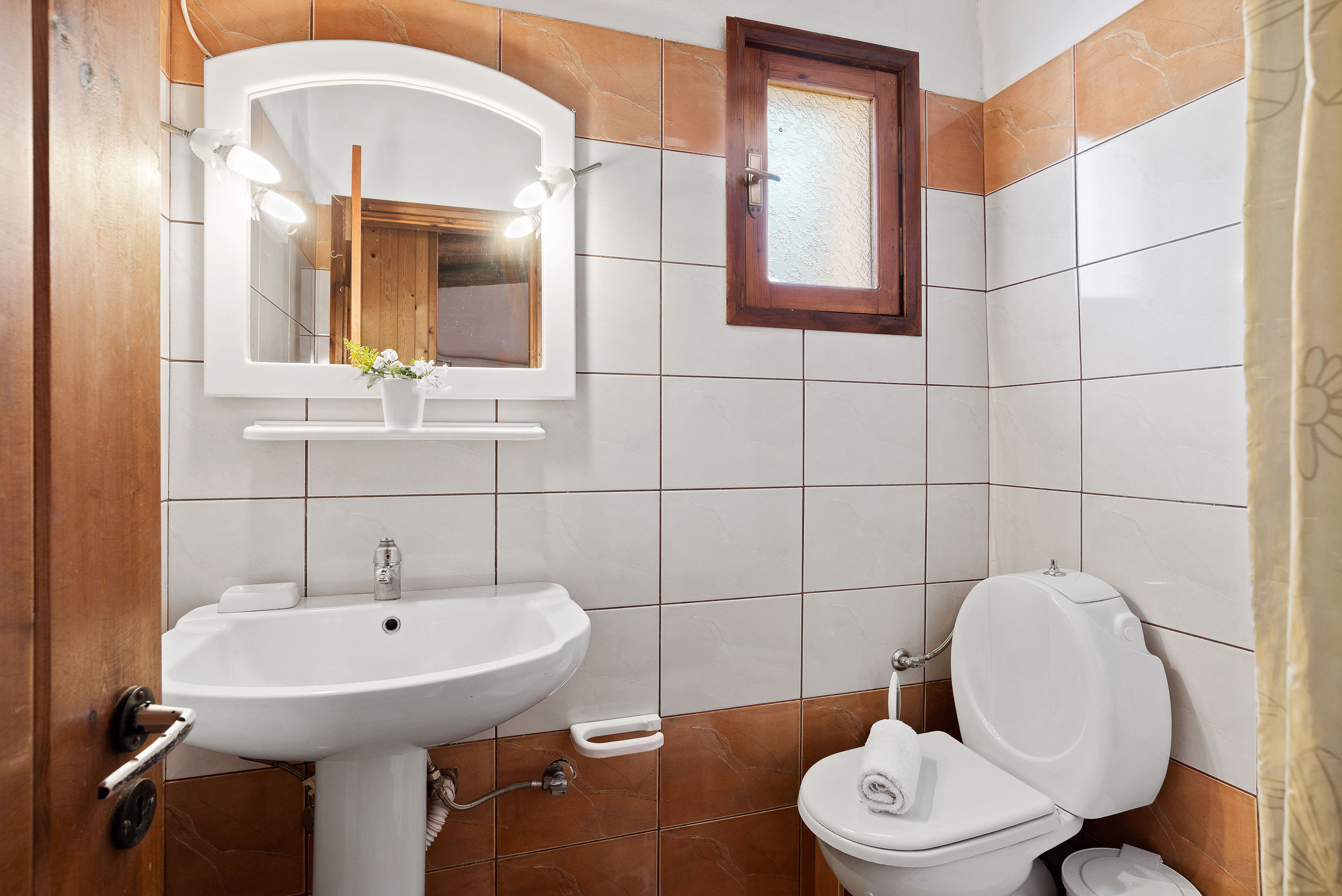 Access to the Penthouse is via a flight of external stone steps and an Internal wooden staircase connects the living area to the bedrooms and bathroom.