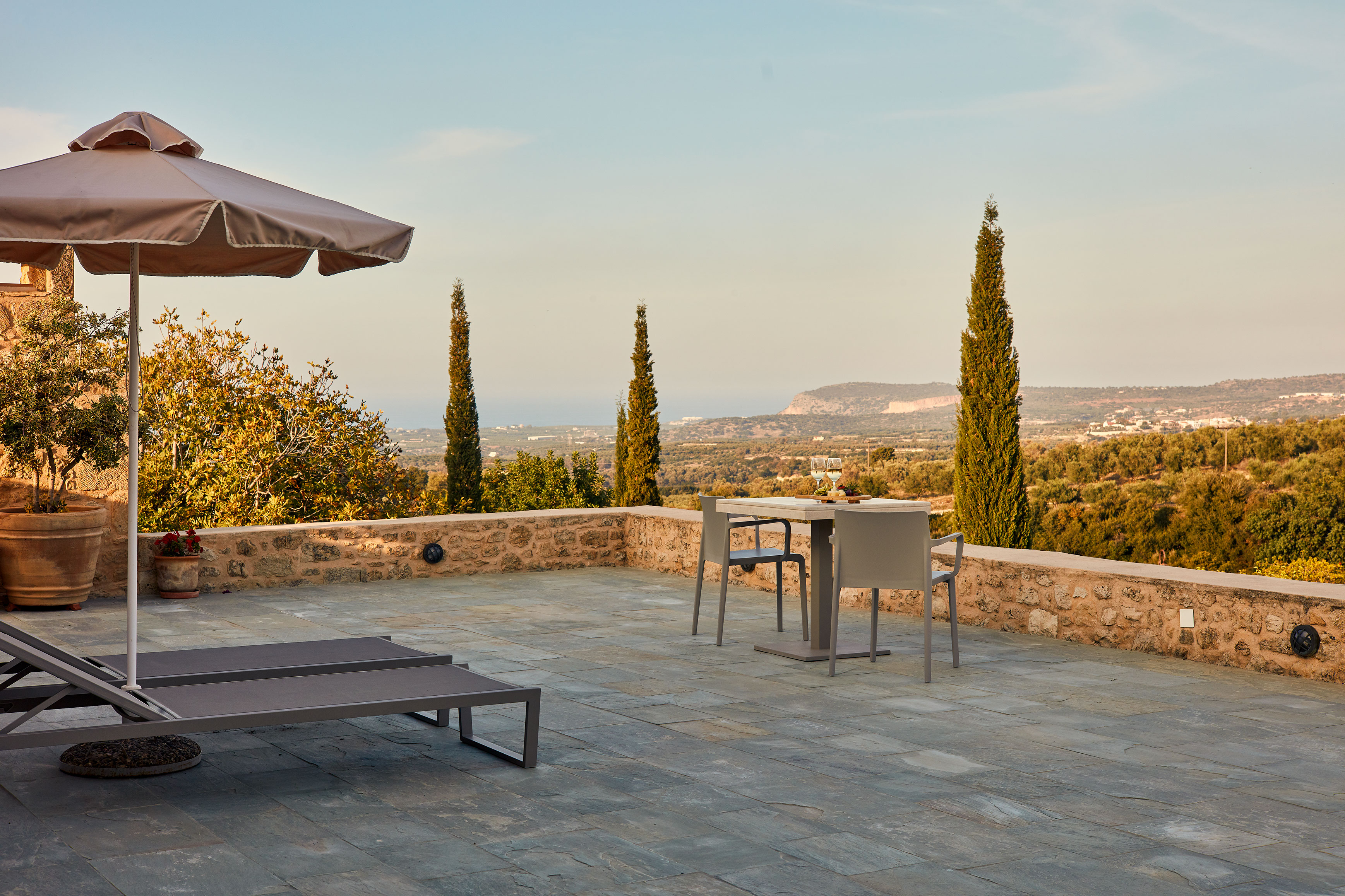 A charming hotel in the countryside actually set within the grounds and buildings of a restored village 18km inland from Rethymno consisting of 22 rooms and suites, a restaurant and a swimming pool. The hotel is built in traditional stone and has lots of character with beautiful country side views and sea views in the distance.