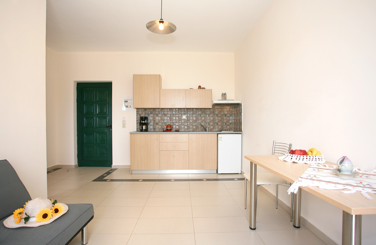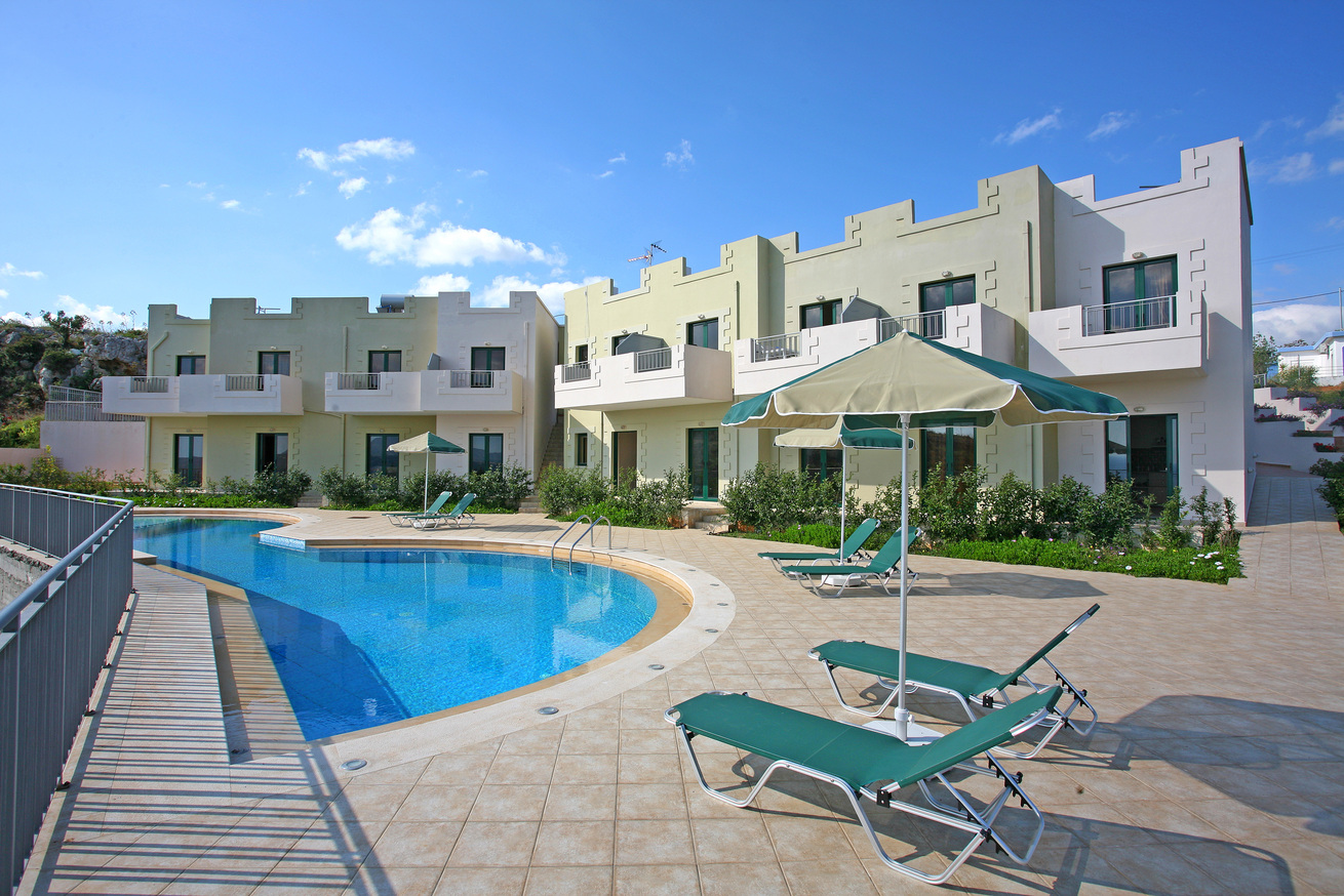 Aptera Paradise apartments are set on the hillside as you arrive into the Village of Aptera. The studios and apartments are simply furnished but offer a great location for a base for your holiday. They have air-conditioning, small kitchenette area with a fridge, couple of hotplate rings, coffee machine, kettle and toaster/sandwich maker. Small shower room with hand basin and wc.