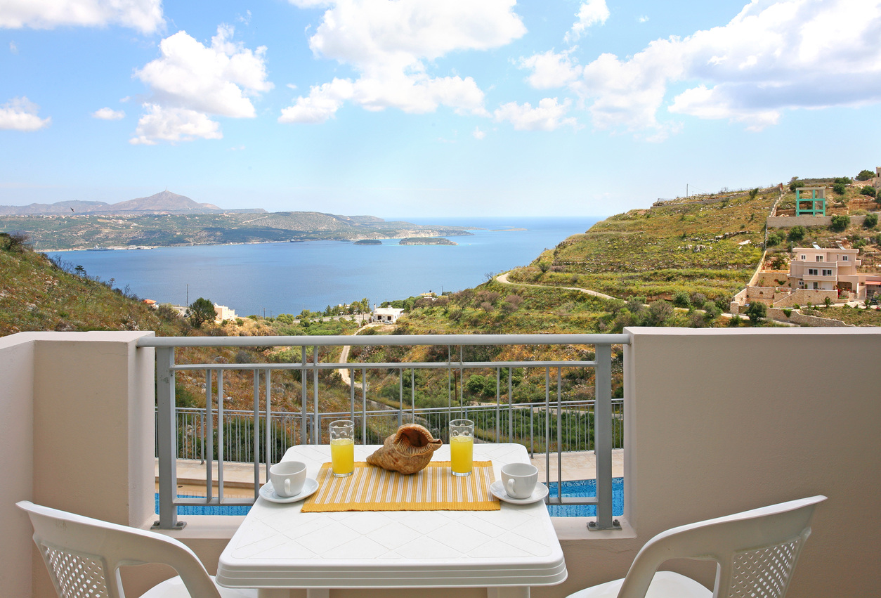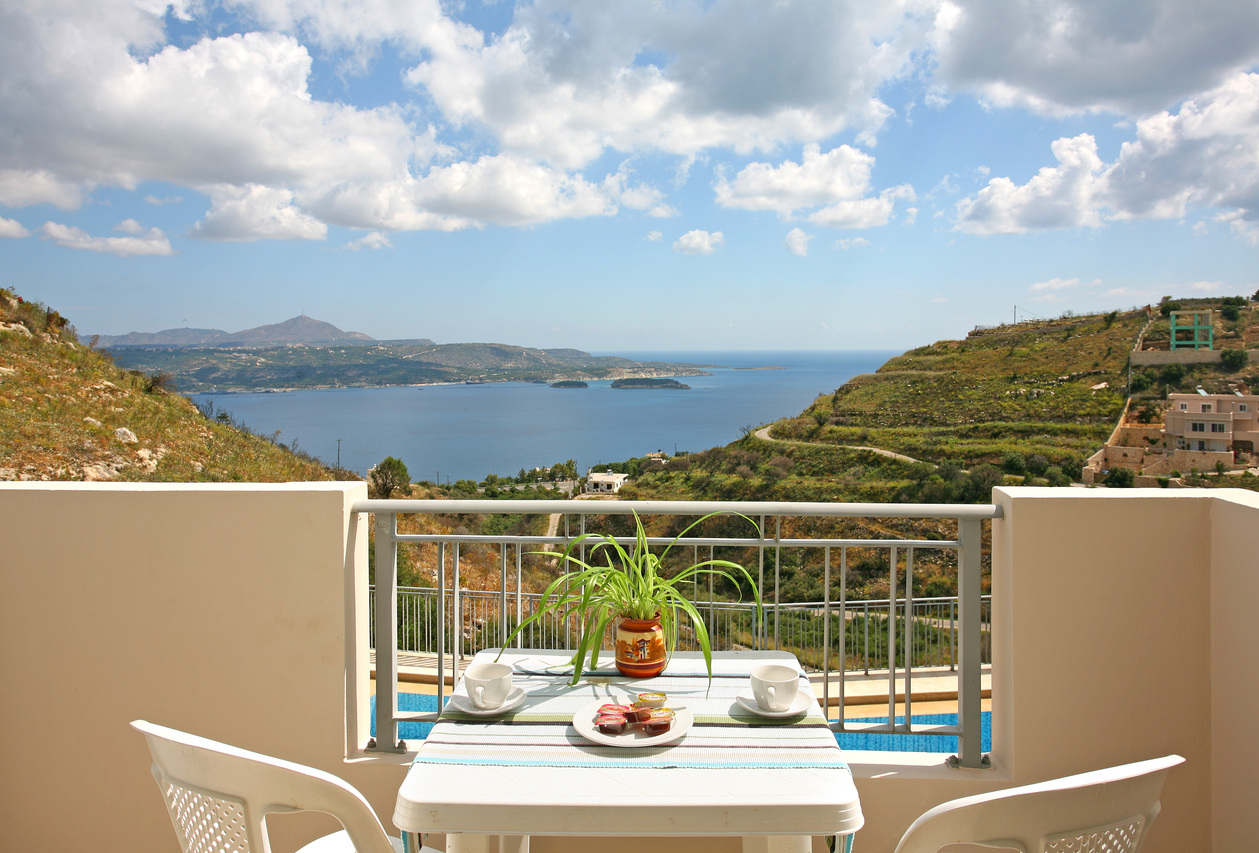 All studios and apartments have sea view and have a balcony / or outside terrace with table and chairs.