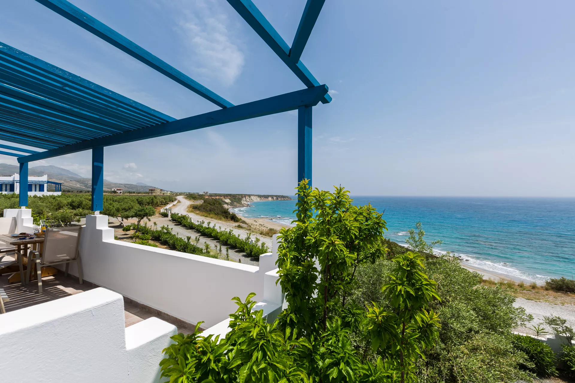 The beautiful Fata Morgana apartments lie less than a km east from the fort of Frangokastello and walking distance to one of the most beautiful beaches in Crete, Orthi Ammos (standing sand) a sandy beach with dunes and shallow crystal-clear waters. There are no beach facilities so it’s perfect for a little more privacy than surrounding busier beaches.
