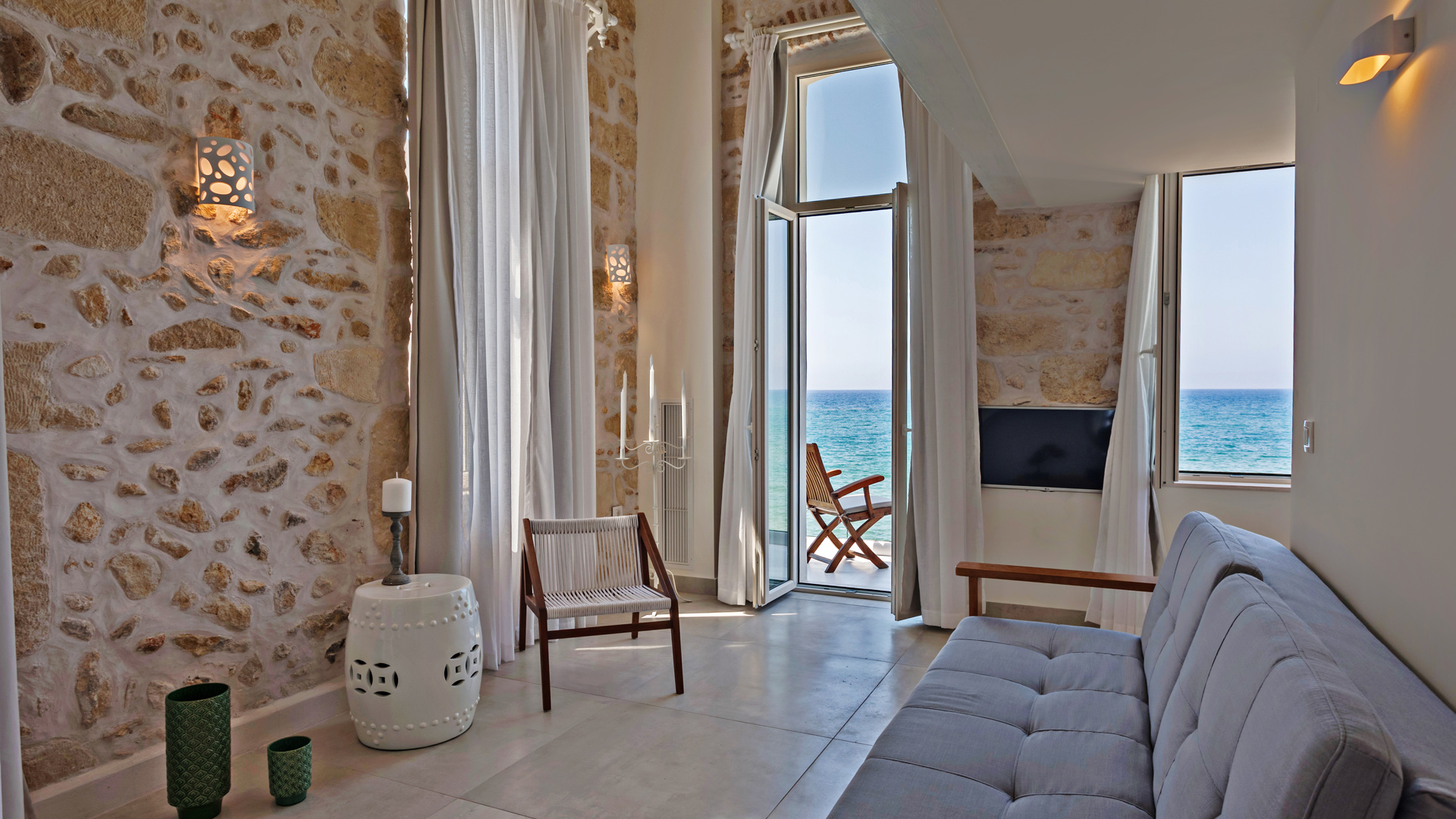 The Thalasses Boutique Hotel is situated in a beautiful, renovated building in a beach front location on the Western edge of the town of Rethymno. This small boutique hotel has been beautifully restored and all the suites have lots of character, most with balcony and sea view.