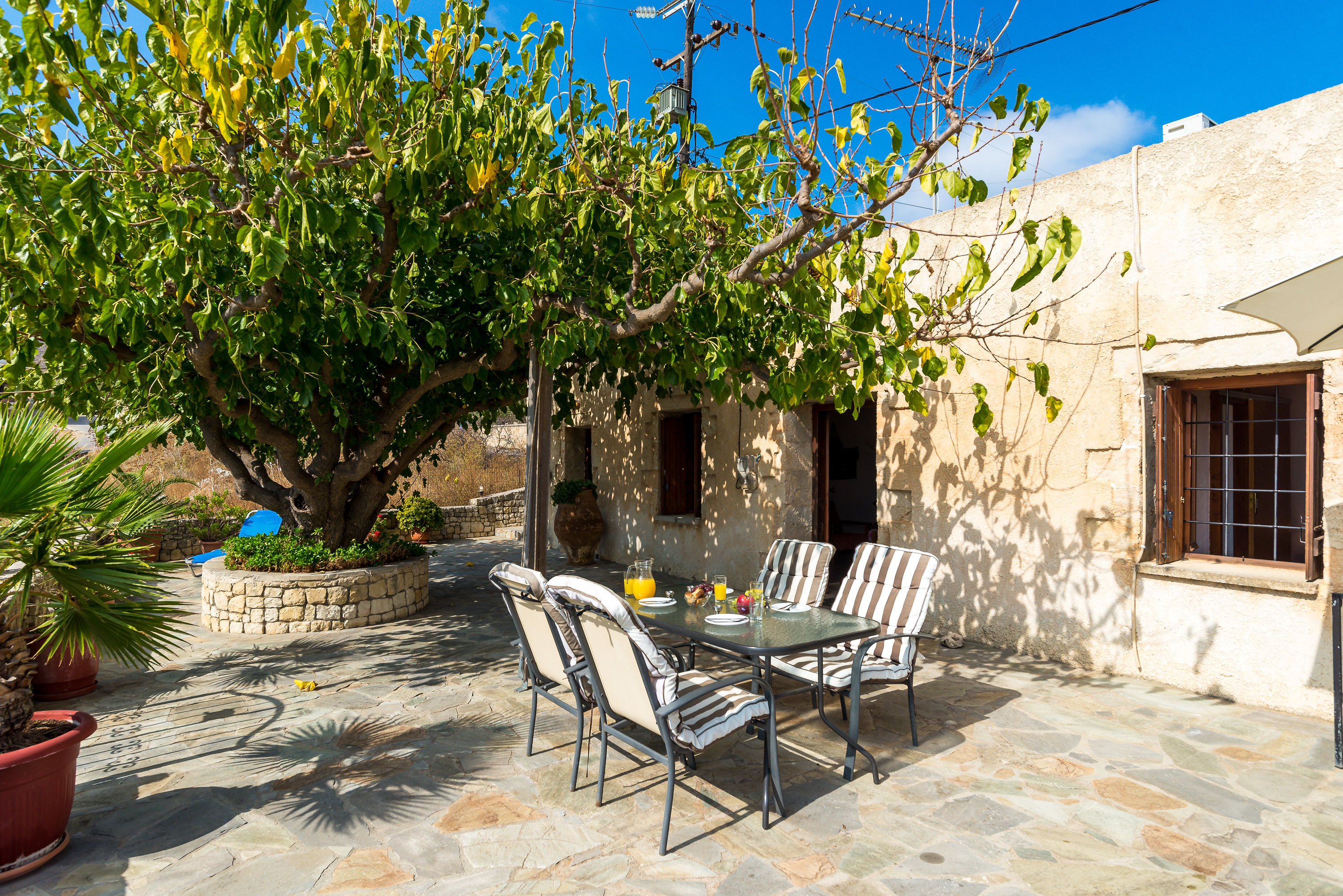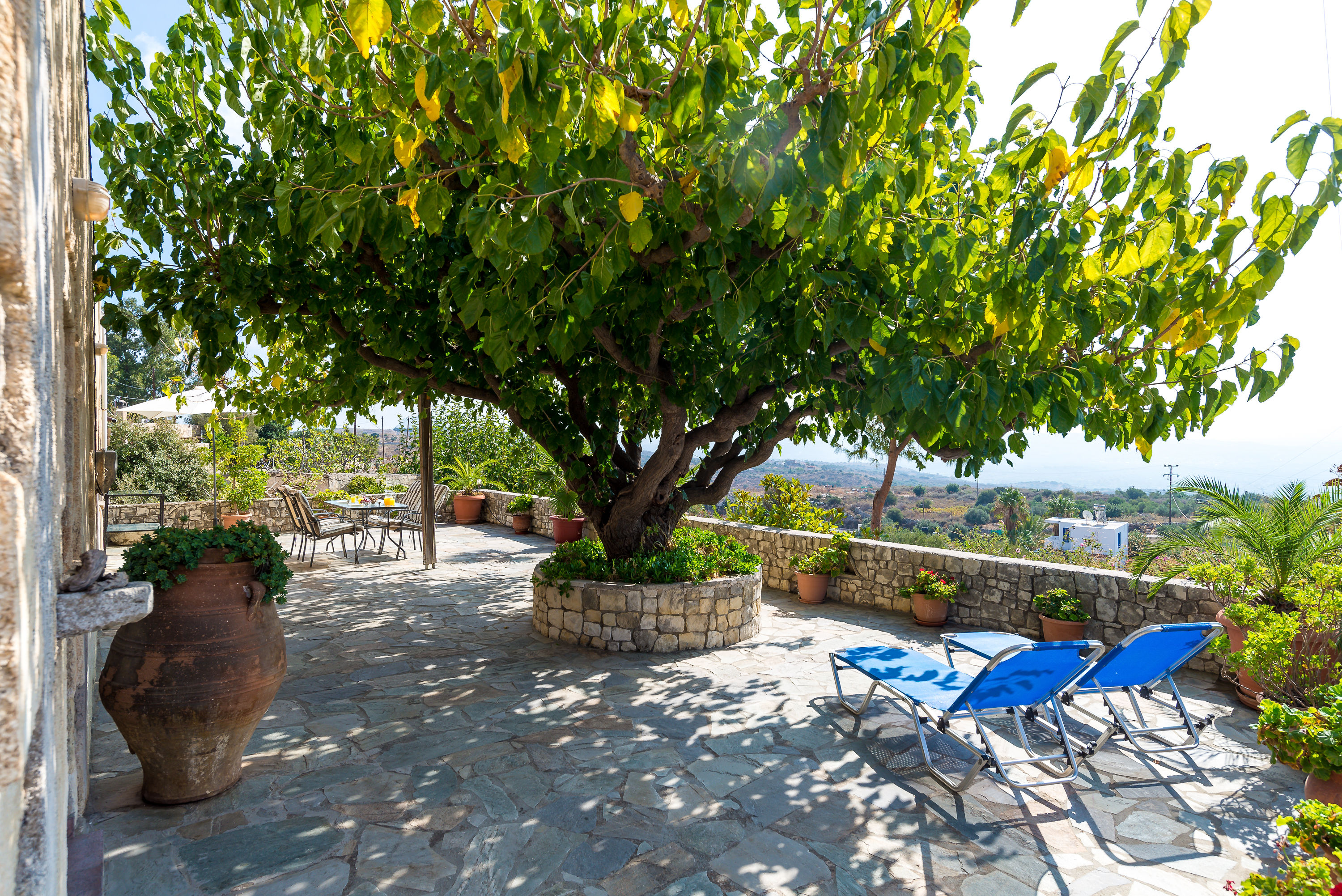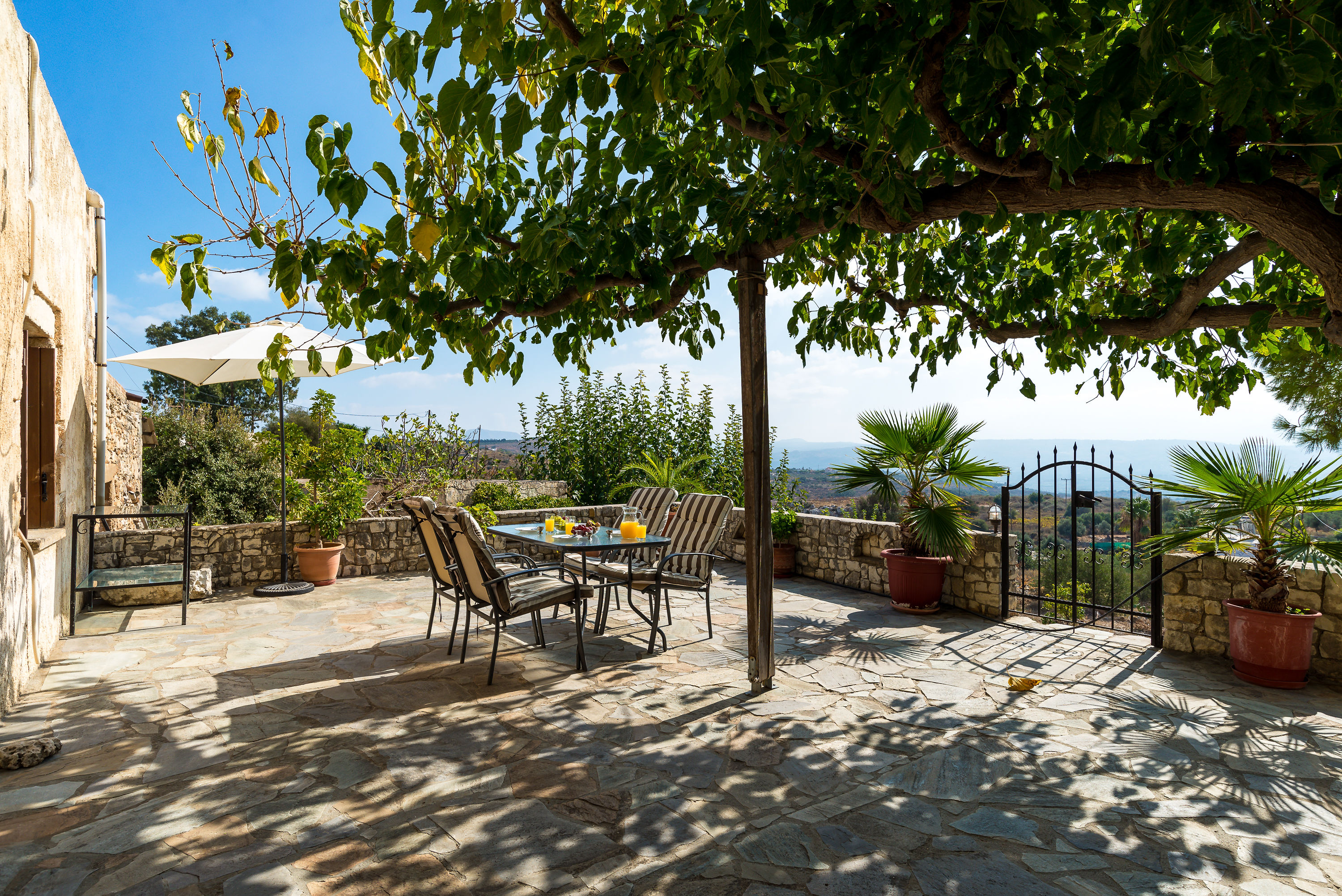 Artemis House is a traditional stone-built house that offers a romantic hideaway with spectacular mountain views. Its large veranda with low stone wall and beautiful mulberry tree provides ample shade and is perfect for al fresco meals and drinks. The house overlooks Aptera village in Northwest Crete and up towards the White Mountains and is set in a residential part of the village