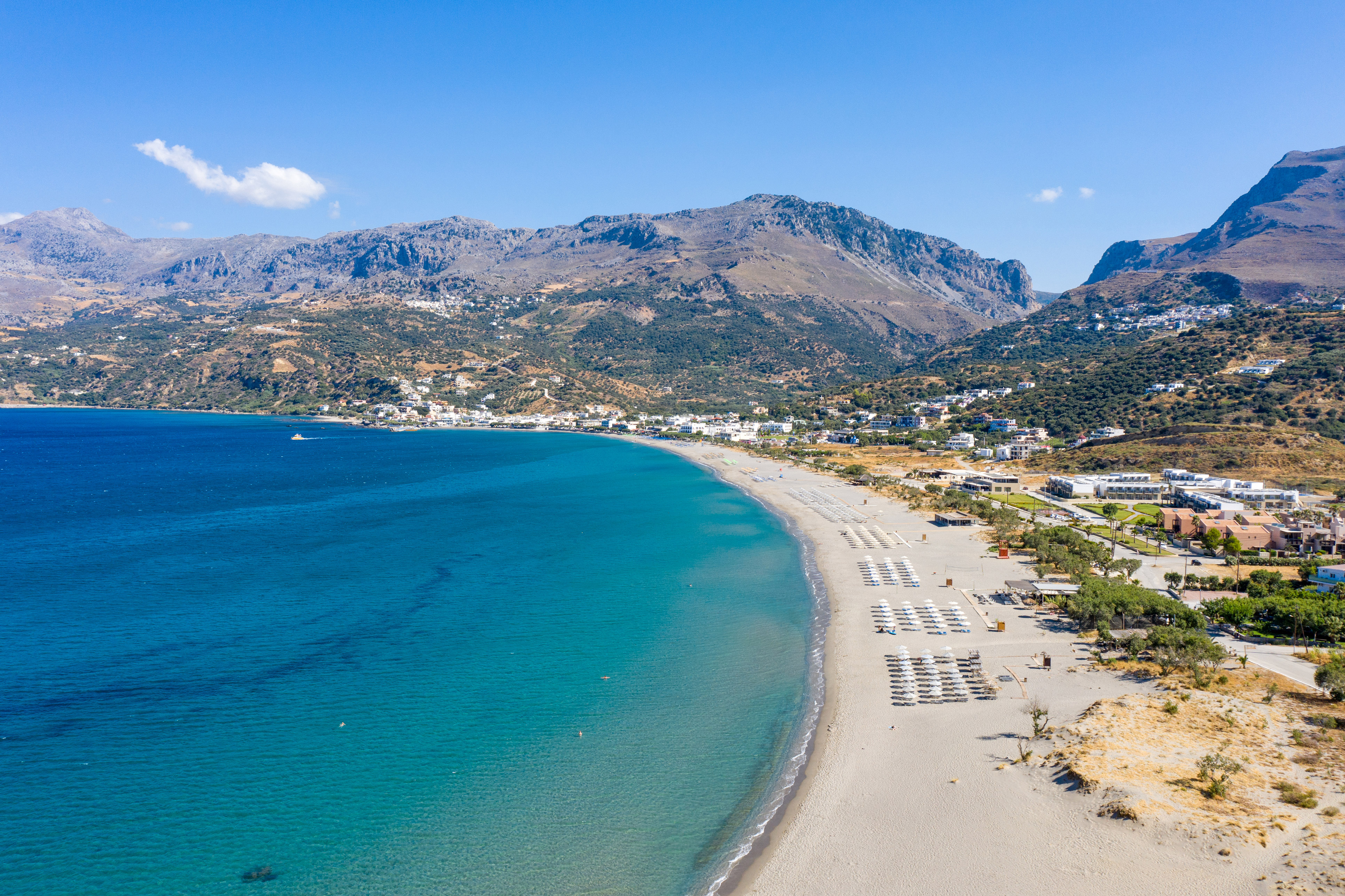 Plakias village lies on the south coast of Crete , directly south of Rethymno, 35 kms away. Originally a small fishing village with just a few house, Plakias is now a popular destination for holidays. It is surrounding by mountains to the North and the Libyan sea to the south, lies in a crescent bay and has one of the biggest sandy beaches on the island, which shelves very gradually making it ideal for bathing.