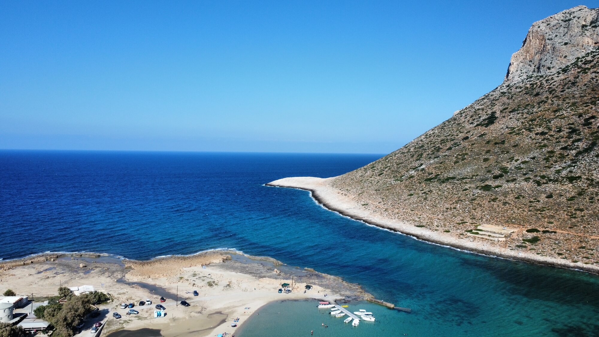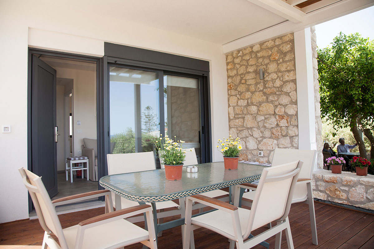 Each apartment has wonderful views, either of the mountains or over the cove of Stavros to the Aegean Sea beyond. It was at the beach of Stavros, with its clear waters, that many of the scenes of the internationally acclaimed film Zorba the Greek were filmed, including the famous syrtaki dance, with Antony Quinn and Alan Bates.
