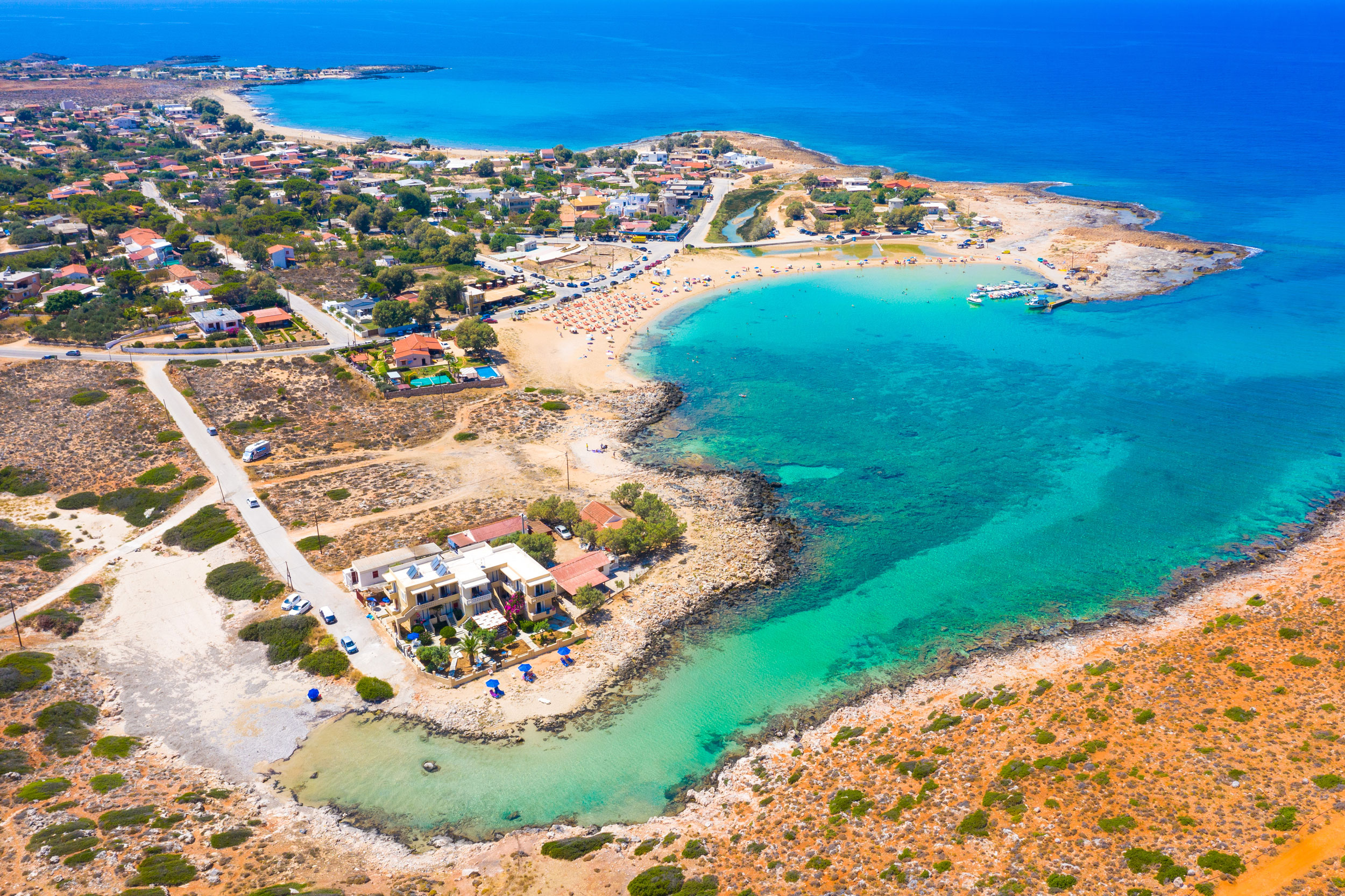 Once a small fishing village, Stavros is a seaside village which lies to the North of Crete on the northern tip of the Akrotiri Peninsula, a 30 min drive from Chania. With 2 beaches, one with Blue Flag status and a semicircular lagoon withwhite sand and shallow turquoise water dominated by the camel shaped Mount Vardies that rises up above the harbour. Here you will find sunbeds and umbrellas and tavernas.