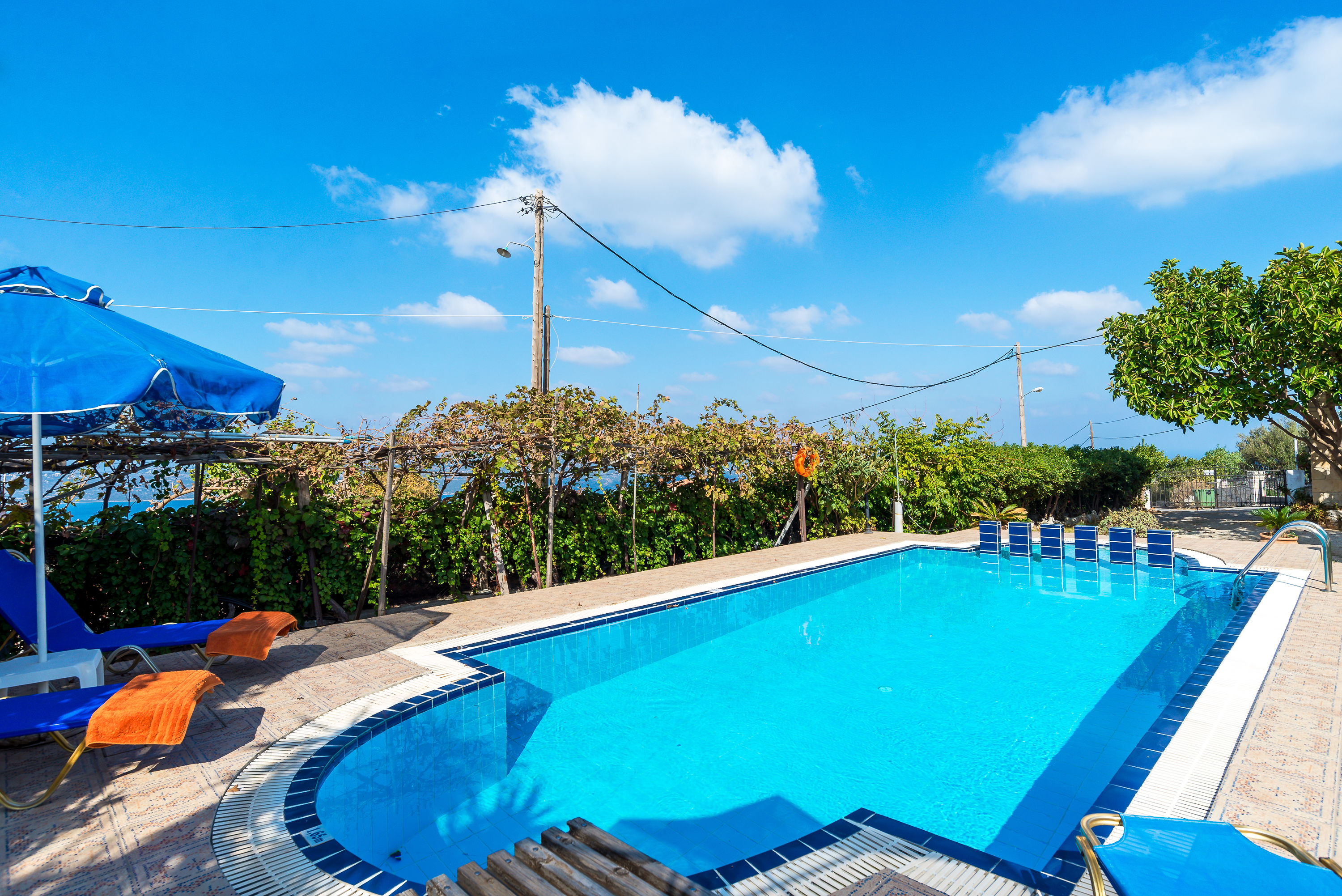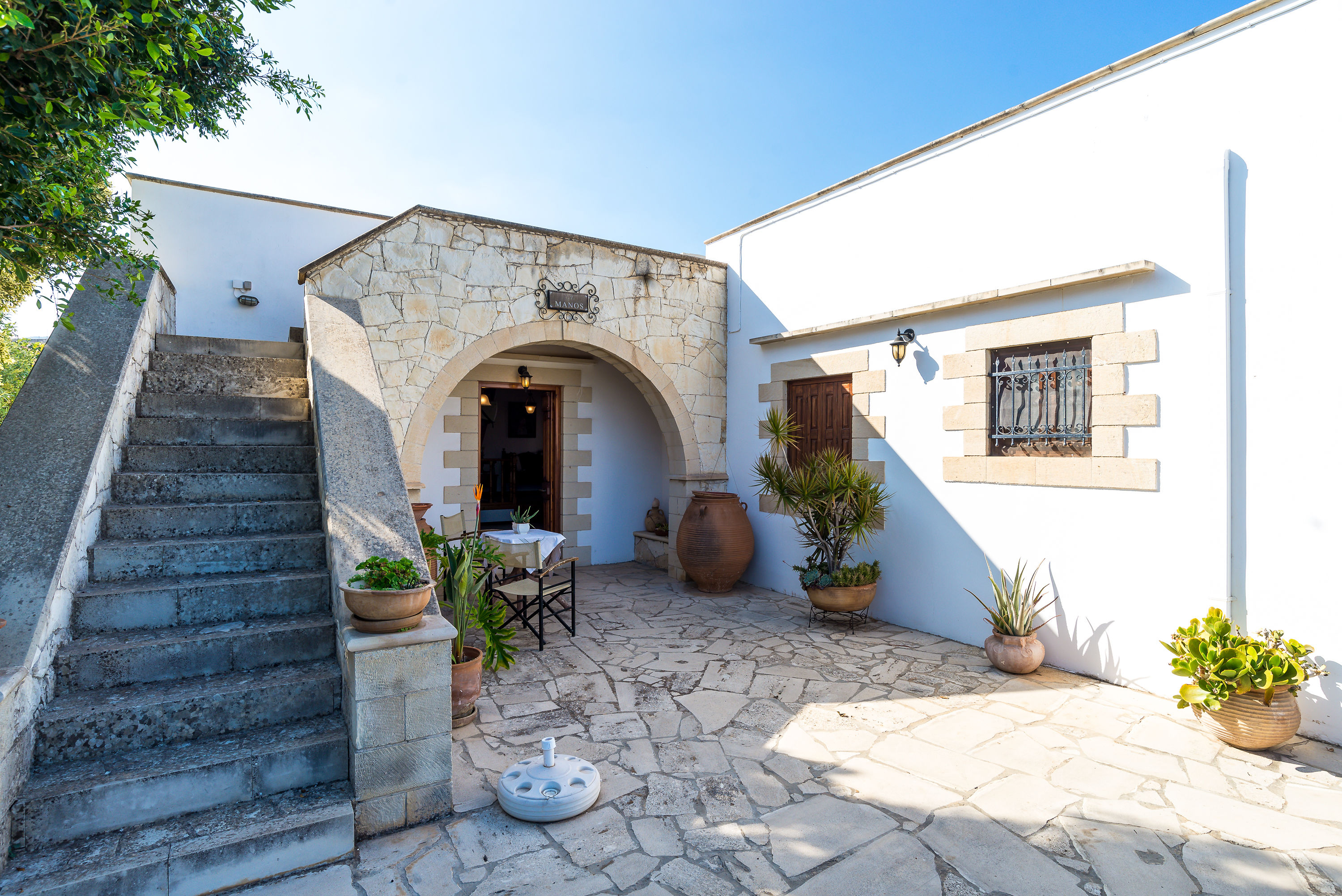 Manos Houses are two stone built traditional cottages on one level with a large pool, in a residential area of the hill top village of Aptera, North Western Crete with its views of the White Mountains and choice of tavernas, a kafenio and local store. Each Manos house is fitted and furnished to a very high standard and enjoys both sea views across Souda Bay and breathtaking views of the White Mountains.